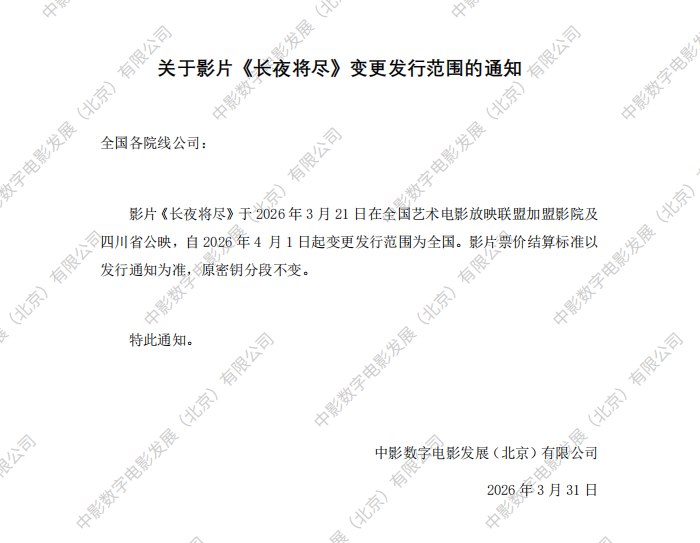 发行通知 » 《长夜将尽》变更发行范围的通知