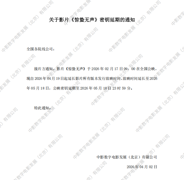 关于影片《惊蛰无声》密钥延期的通知
