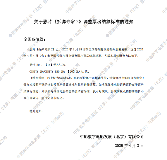 发行通知 » 《拆弹专家2》调整票房结算标准的通知