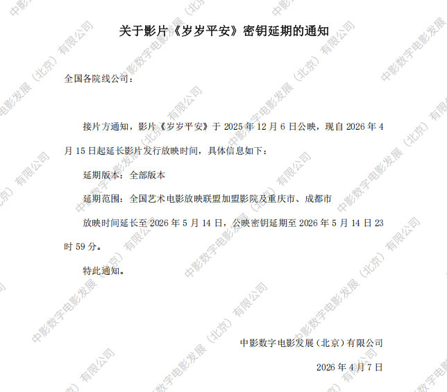 发行通知 » 《岁岁平安》第四次密钥延期的通知