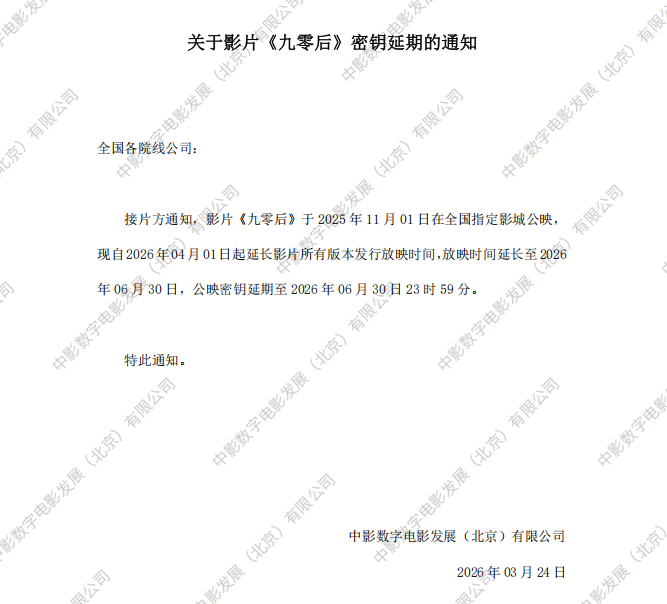 《九零后》密钥延期的通知