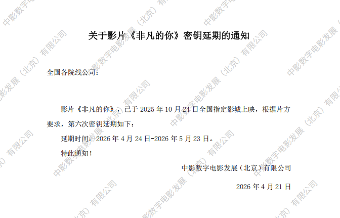 《非凡的你》密钥延期的通知