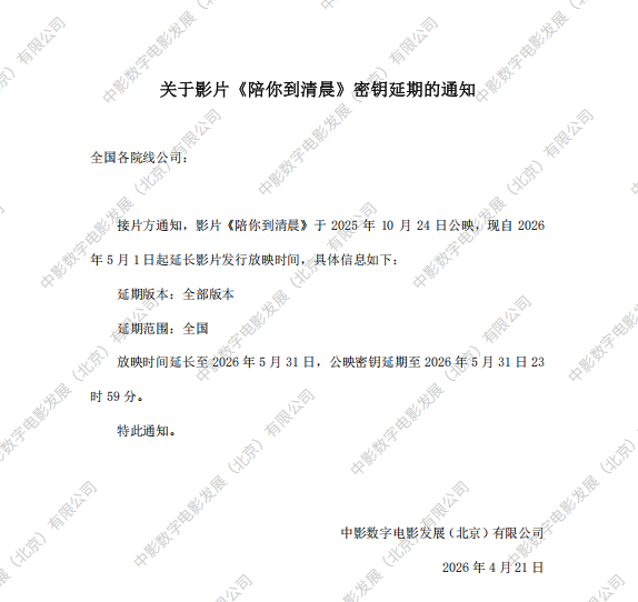 《陪你到清晨》第二次密钥延期的通知