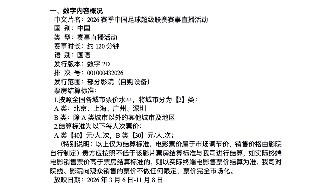 发行通知 » 《2026 赛季中国足球超级联赛赛事直播活动》发行通知