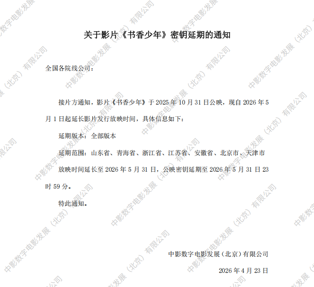 《书香少年》第二次密钥延期的通知