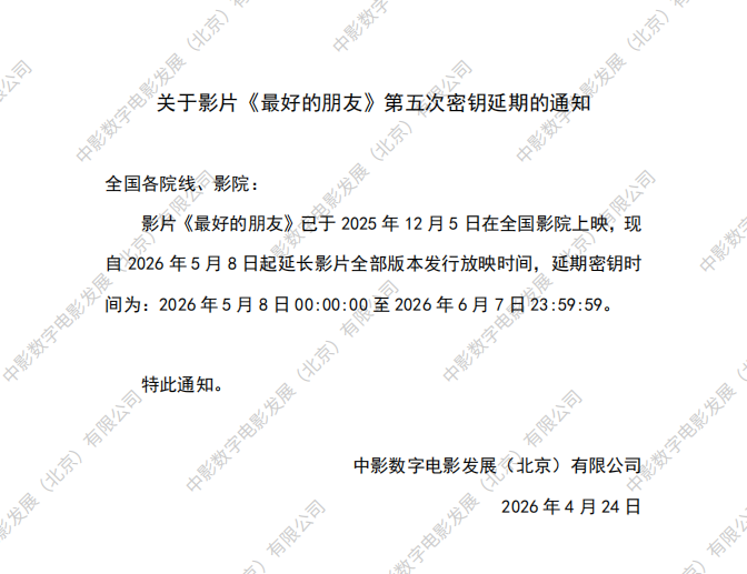 《最好的朋友》第二次密钥延期的通知