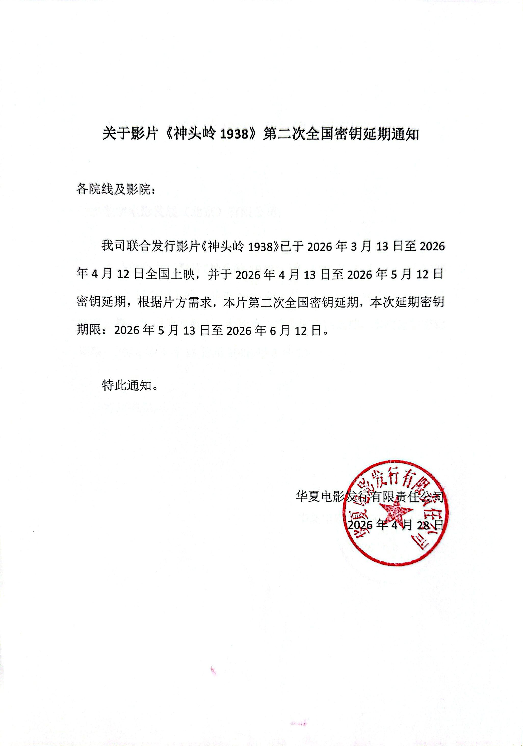 《神头岭1938》密钥延期的通知